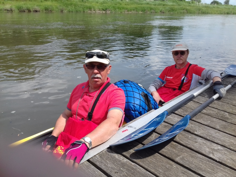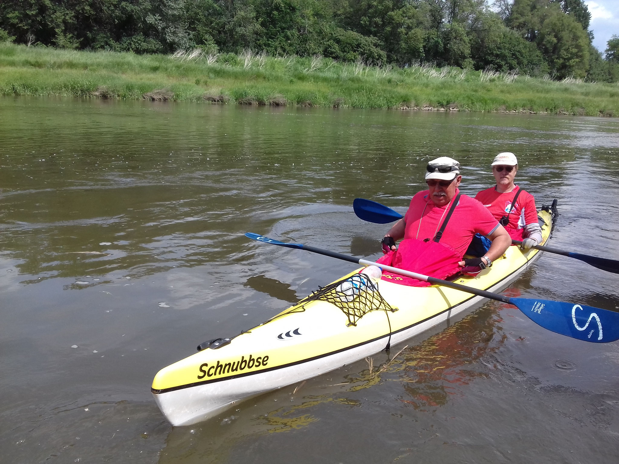 Am Sonnabend, den 3. Juni wurden in aller Frühe die Schnubbse, unser neuer Wanderzweier, sowie Gepäck aus dem Stall (Boothalle) geholt und die Pferde gesattelt. Als alles gut verstaut war, ging die Fahrt nach Bad Dürrenberg zum ortsansässigen Kanuclub. Die Hausherren lagen an diesem Morgen wohl noch in den Federn, denn außer uns und weiteren Gastkanuten war niemand zu entdecken. Ohne langes Federlesen brachten wir das Boot zu Wasser und das Abenteuer begann.