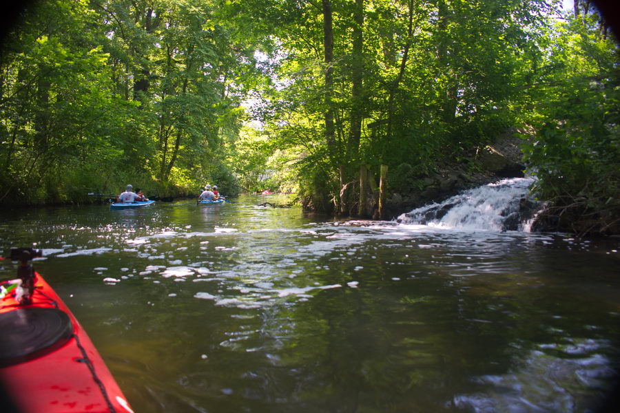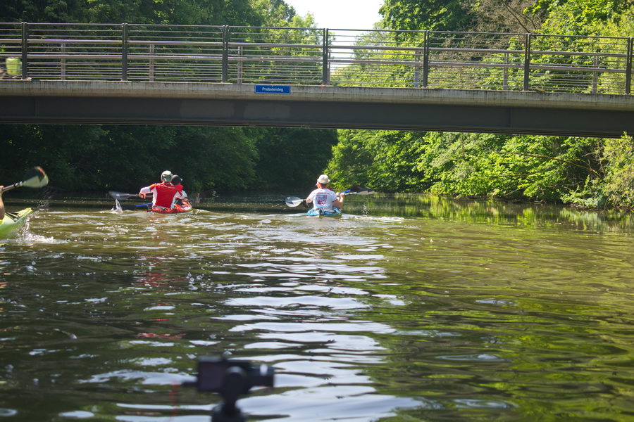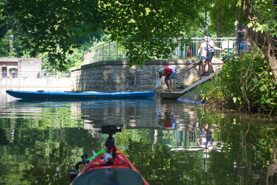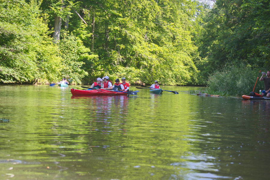 Da der Graben nur zu bestimmten Zeiten befahren werden darf, legten wir eine Pause ein und warteten auf die Freigabe. Während wir warteten, sammelten sich immer mehr Paddler vor der Mündung. Frech wie wir sind sicherten wir uns die Poleposition und legten einen Traumstart hin.